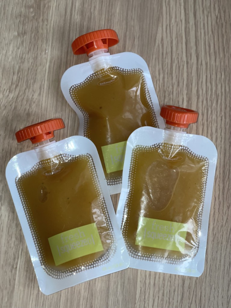 Yam, pumpkin, plantain pouches; our pouches are a smooth texture for adding Caribbean food to your baby’s repertoire